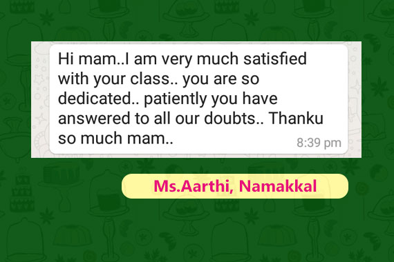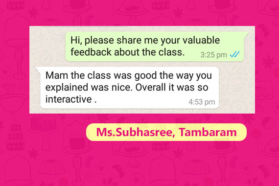 Class romba supera irunthuthu epa doubt kettalum konjam kuda kochikama sonnega...Msg epa panalum rly udane panrenga elarum ipadi panvanganu sola mudiyathu.thank u so much mam..